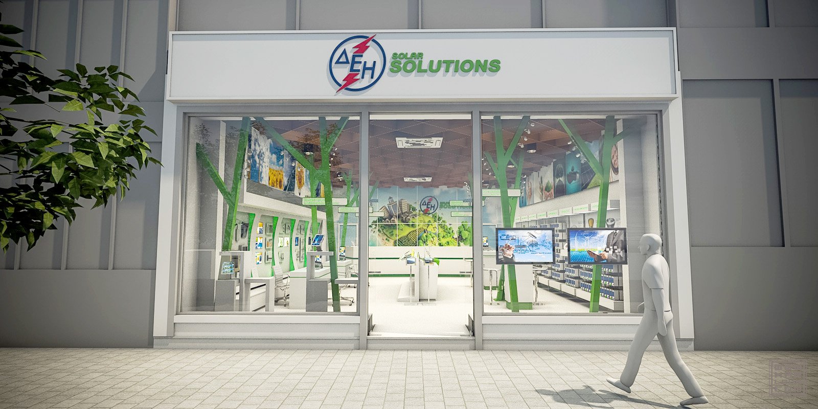 Design for the pilot shop for National Electricity Corporation. A retail shop for solar energy solutions. DEH Solar Solutions pilot shop